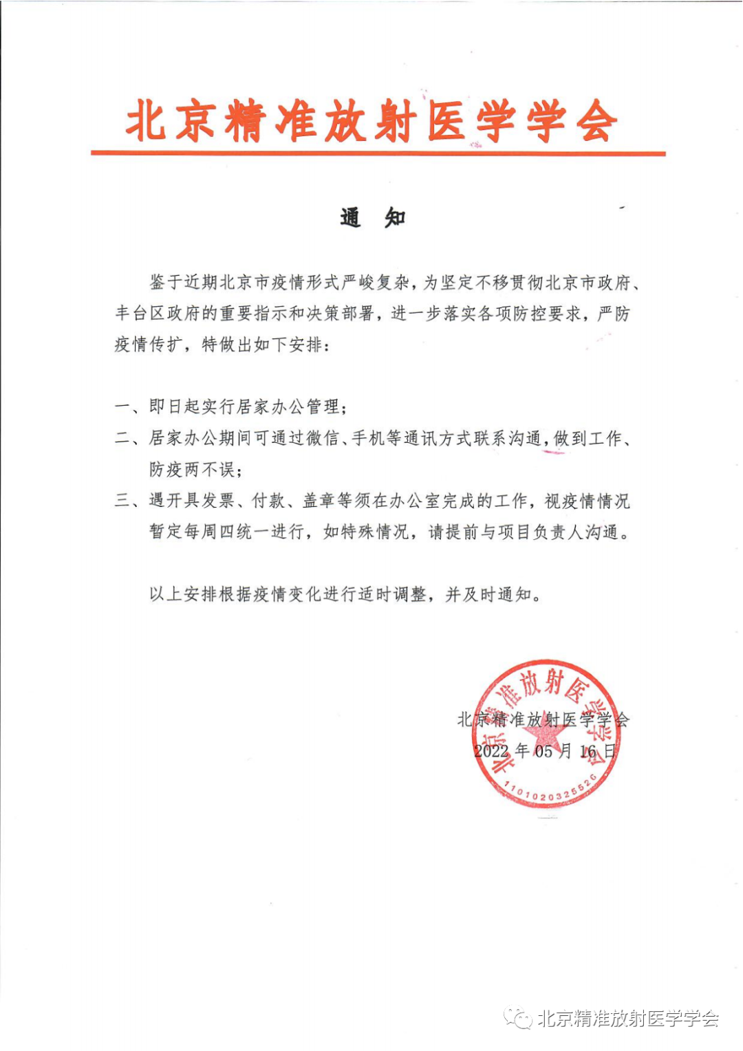 北京精准放射医学学会疫情期间工作安排通知