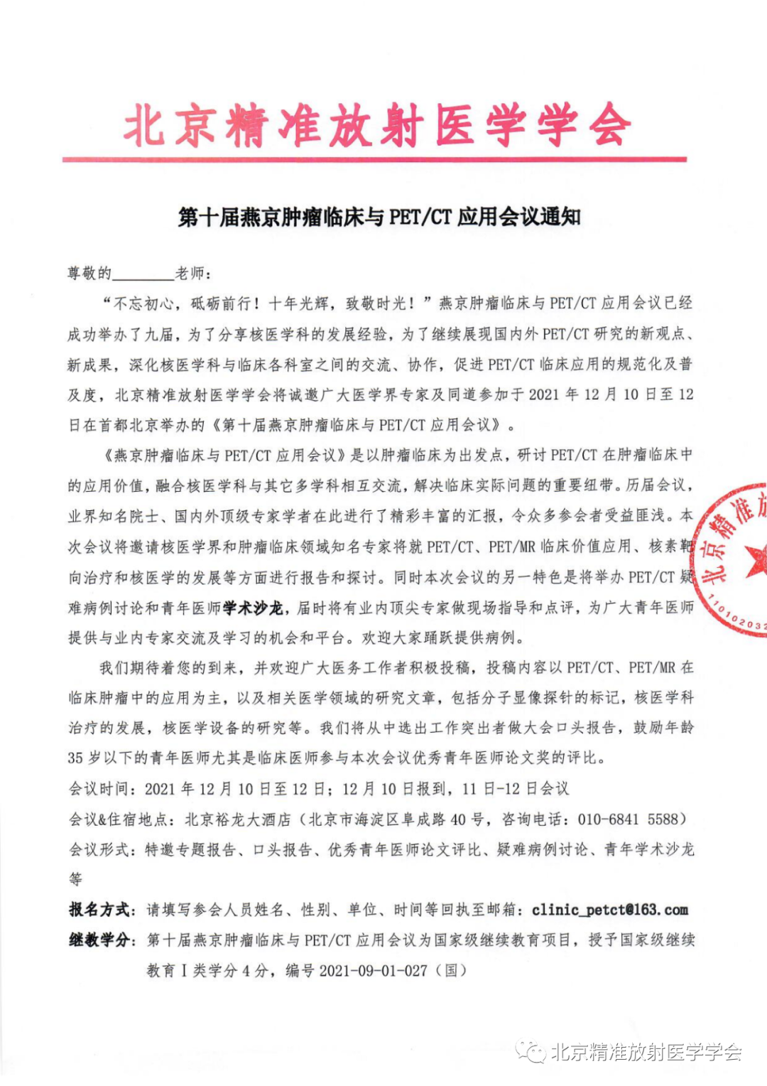第十届燕京肿瘤临床与PET·CT应用会议通知